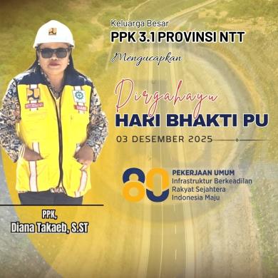 Keluarga Besar Pejabat Pembuatan Komitmen (PPK) 3.1 Provinsi NTT Mengucapkan Selamat Hari Bakti ke 80 Pekerjaan Umum (PU) tanggal 03 Desember 2025.