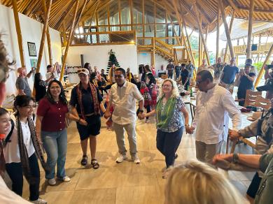 Pertemuan tersebut diakhiri dengan bernyanyi dan menari bersama antara Gubernur serta para wisatawan dan tamu undangan yang hadir.