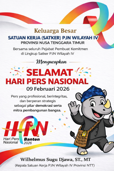 Keluarga Besar Satker PJN Wilayah IV Provinsi NTT Mengucapkan Selamat Hari Pers Nasional