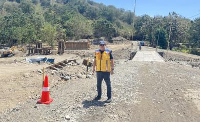 Ia menjelaskan, saat ini pekerjaan lapangan telah memasuki tahap pengecoran dinding abutment arah Kalabahi dan pemasangan bronjong di sisi hulu. Berdasarkan data terbaru, progres fisik menunjukkan realisasi 40,30 persen atau lebih tinggi dari rencana 30,56 persen, dengan deviasi positif 9,74 persen.